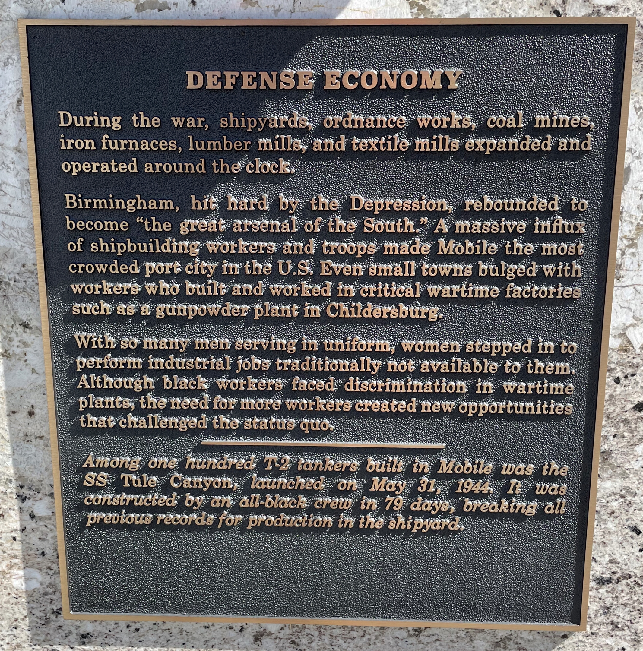 WORLD WAR II DEFENSE ECONOMY MEMORIAL PLAQUE B