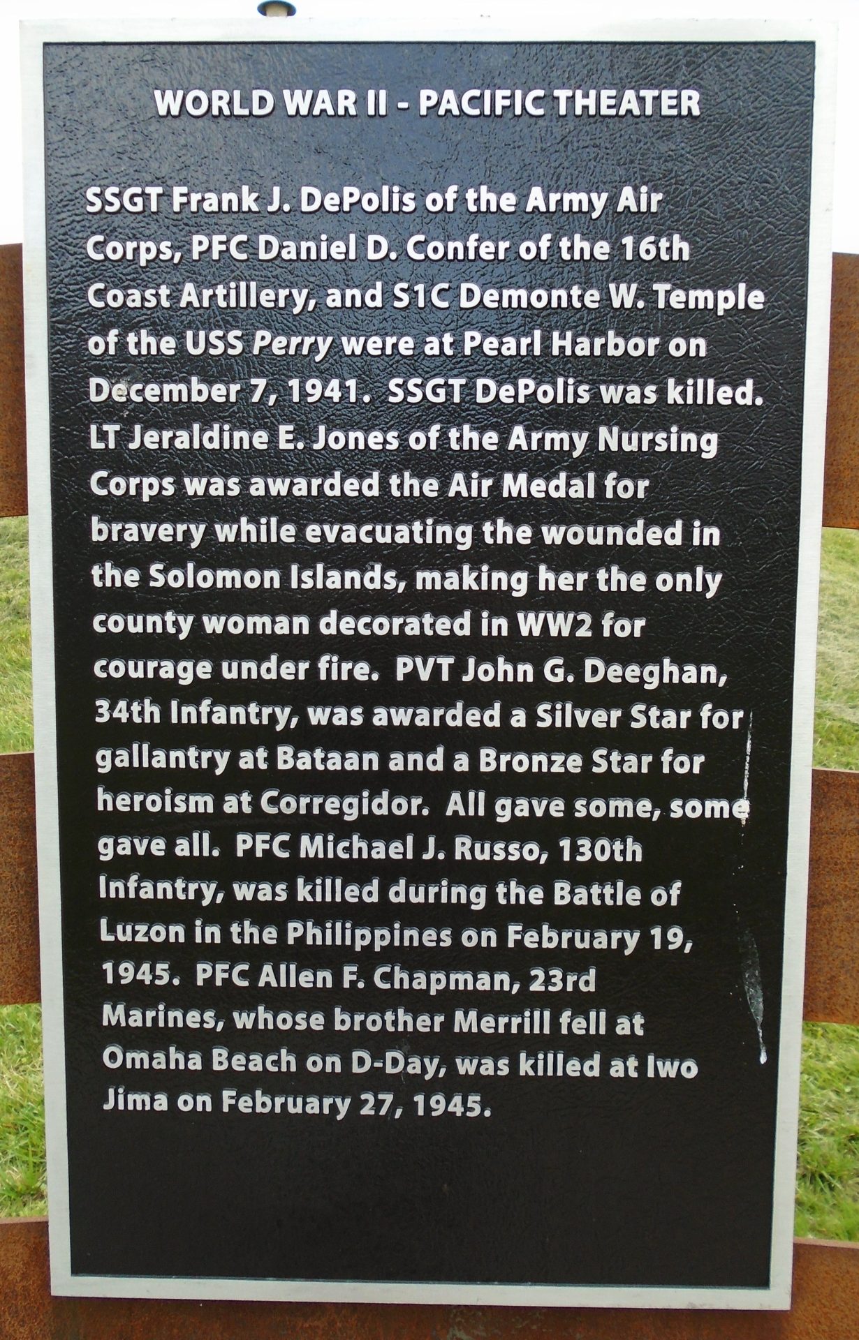WORLD WAR II-PACIFIC THEATER MEMORIAL MURAL PLAQUE