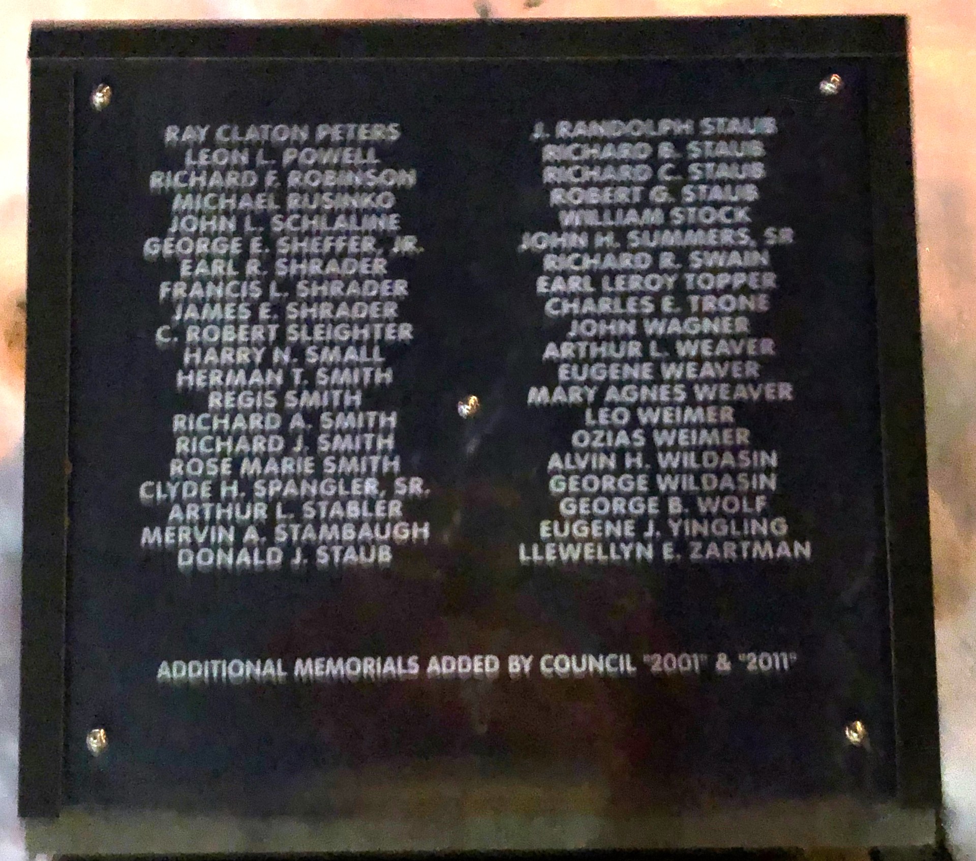 WORLD WAR II VETERANS OF NEW OXFORD MEMORIAL PLAQUE B