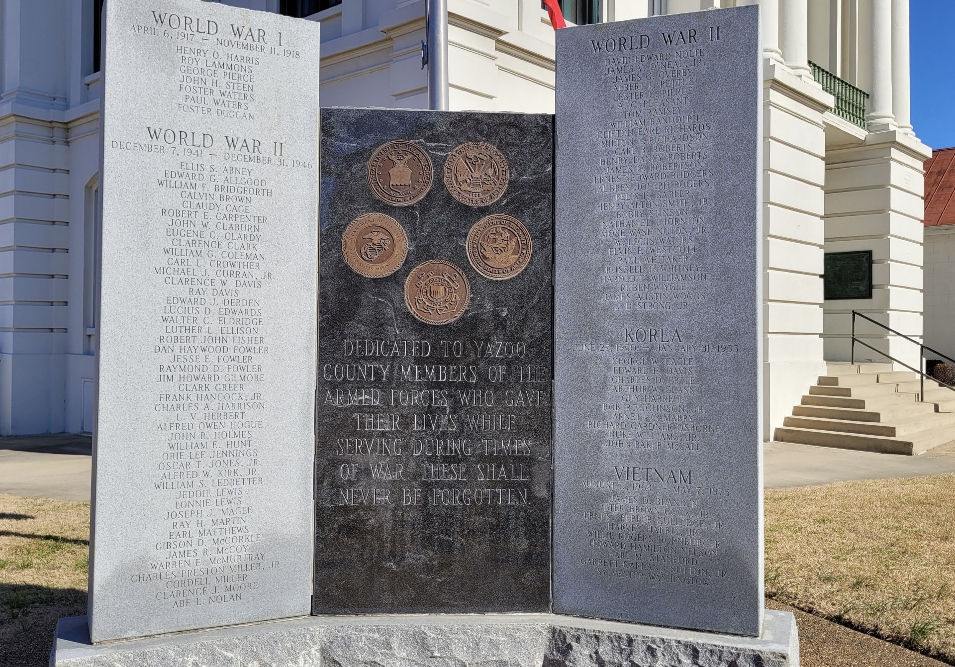 Wars Commemorated: WORLD WAR I, WORLD WAR II, KOREAN WAR AND VIETNAM WAR